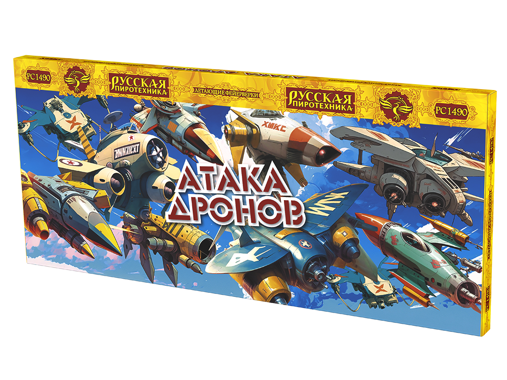 10 вертушек последовательновзлетают с шумоми разбрасыванием серебря- ных искр, в конце разрывают- ся сферами из золотых огнейс красной кометой